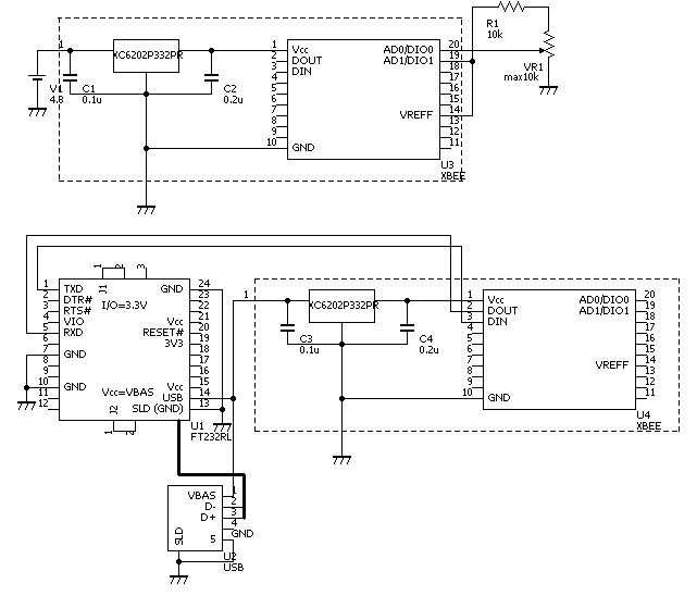 PC-Xbeeの通信にはFT232RL@秋月を使用。
