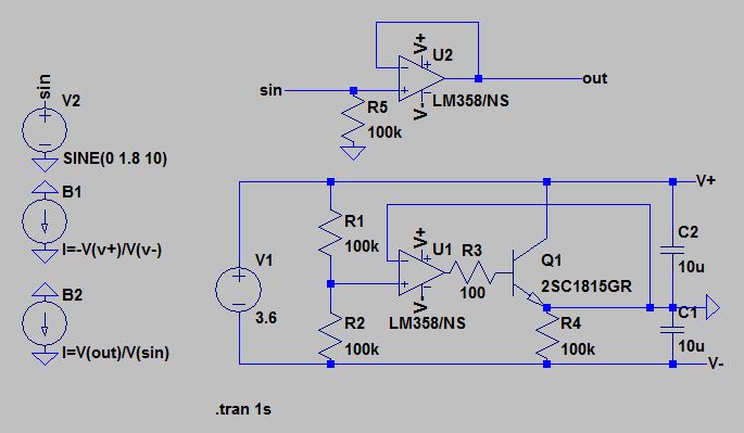 ちなみに358は秋月等で格安で変えるオペアンプなので、大抵の家の部屋に転がってると思います。LTspiceモデルはぐぐってください(ぁ
