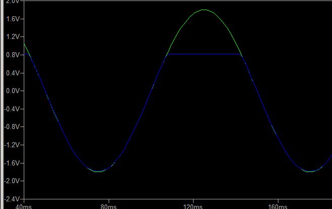 理論上は±0.9程度(電源の半分)の出力が見込めますが、プラス側は0.8Vくらいまでしか出ません。