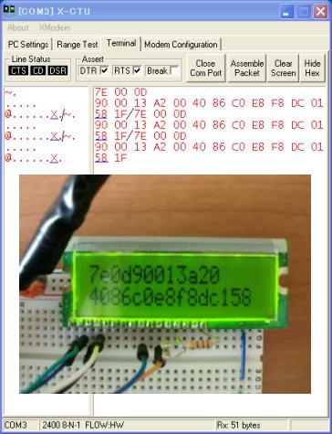 X-CTUとLCDに同じ値が出力されている。「0x01」が「1」のように表示されるのはご愛敬w
